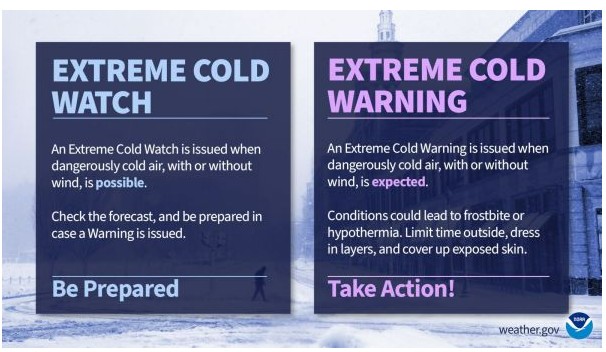 Do you know the difference between an Extreme Cold Watch and an Extreme Cold Warning?